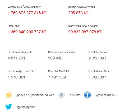 Aktualizované počítadlo veřejného dluhu v kontextu s vývojem HDP, počtem nezaměstnaných a dalšími významnými makroekonomickými údaji může pomoci udělat si lepší představu o současné situaci i vyhlídkách do budoucna. Zdroj: http://www.verejnydluh.cz/